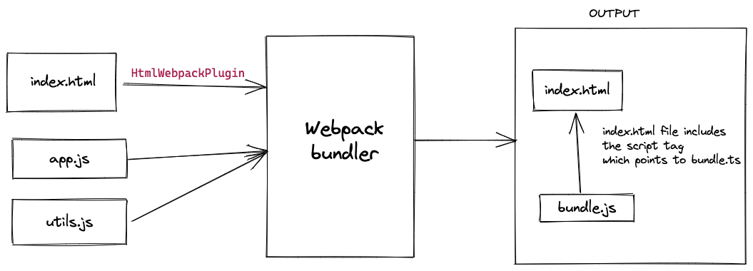 HtmlWebpackPlugin will create an HTML template and add the script tags, which point to bundled JS.